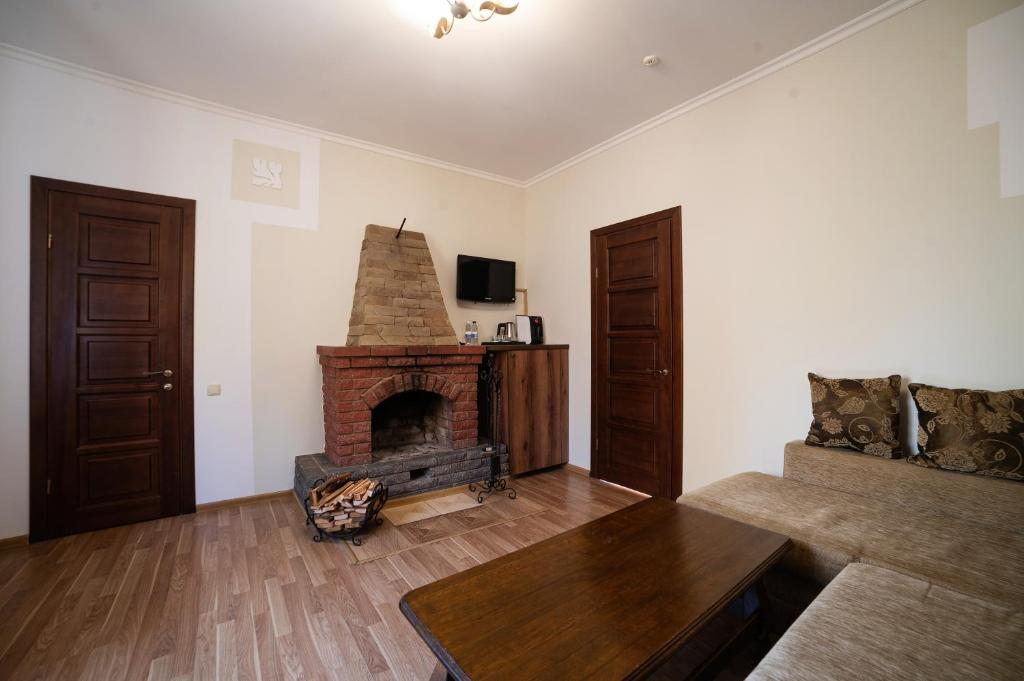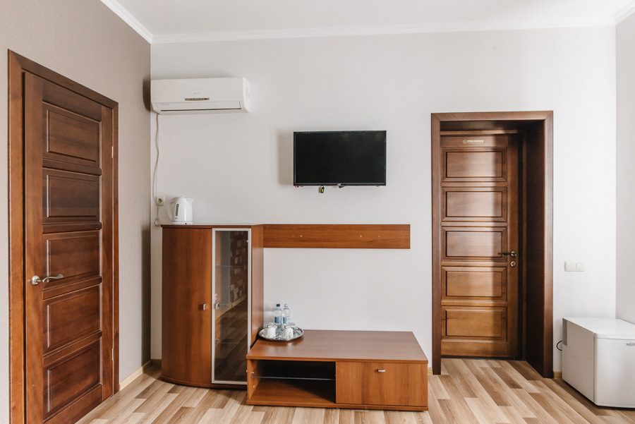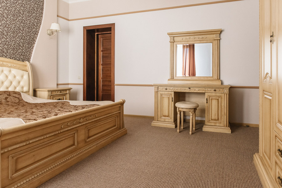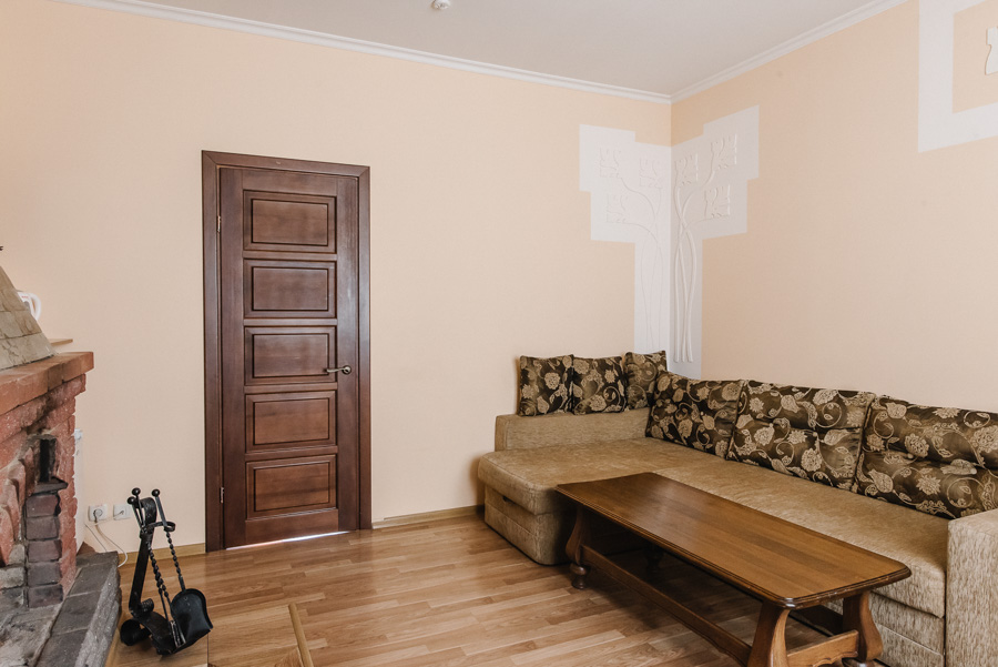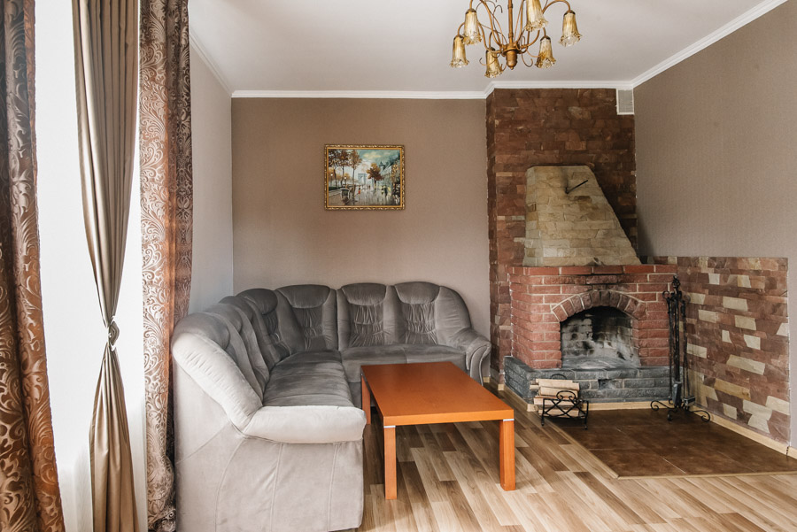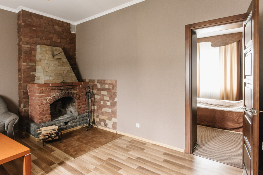 Гордістю нашого готелю є номери категорії люкс, які знаходяться в окремому будиночку із власною стоянкою. Сучасний дизайн, теплі спокійні тона створюють особливу атмосферу затишку та комфорту, яку чудово доповнюють справжні каміни на дровах. Загальна площа номеру: 30 – 37 кв.м.