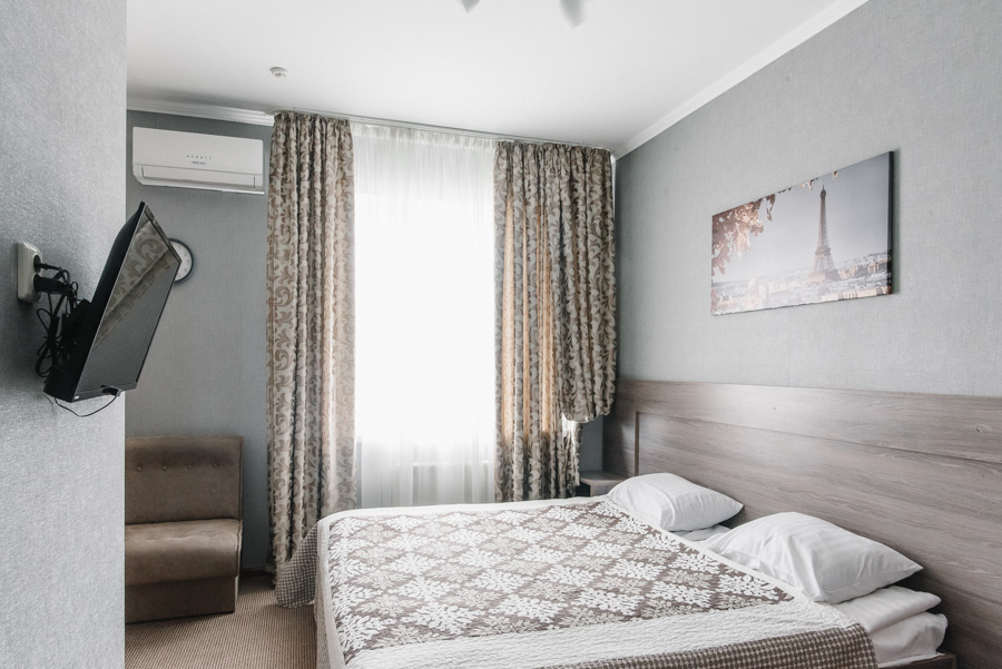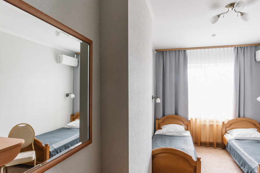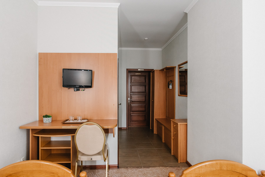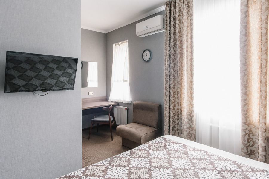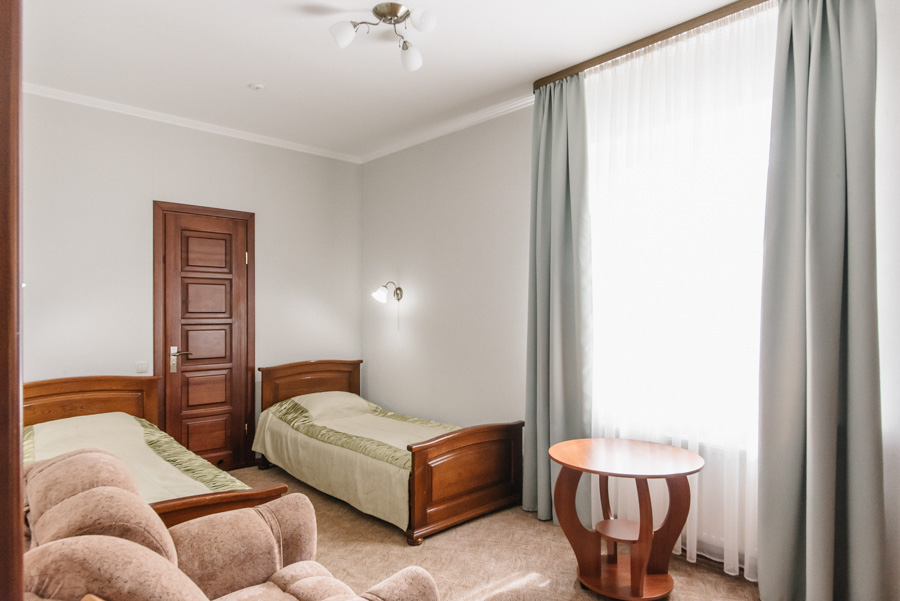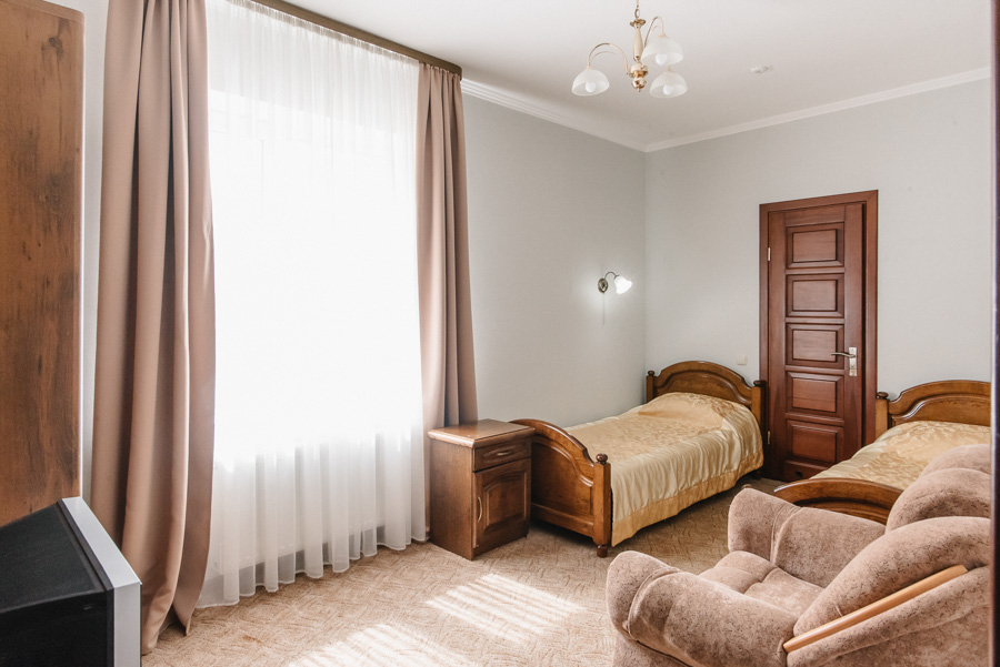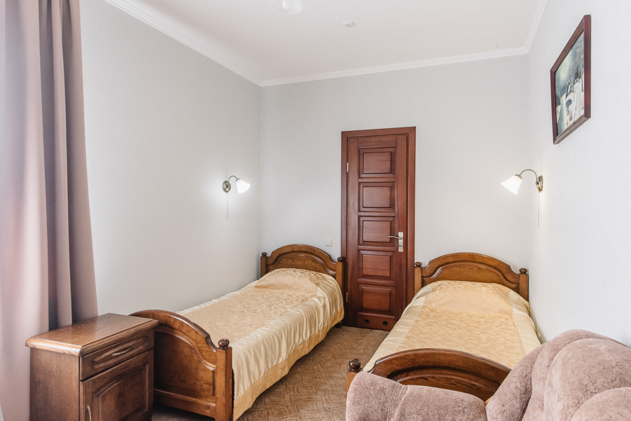 У затишному однокімнатному номері з двома окремими ліжками чи великим двоспальним ліжком на Вас чекатимуть максимальний комфорт та усі необхідні умови, щоб відпочити з дороги і зняти втому після напруженого дня. Площа номера від 12 до 14 м2. Він чудово підходить для тих, хто приїхав у пошуках нових вражень або ж завітав до Луцька у справах.