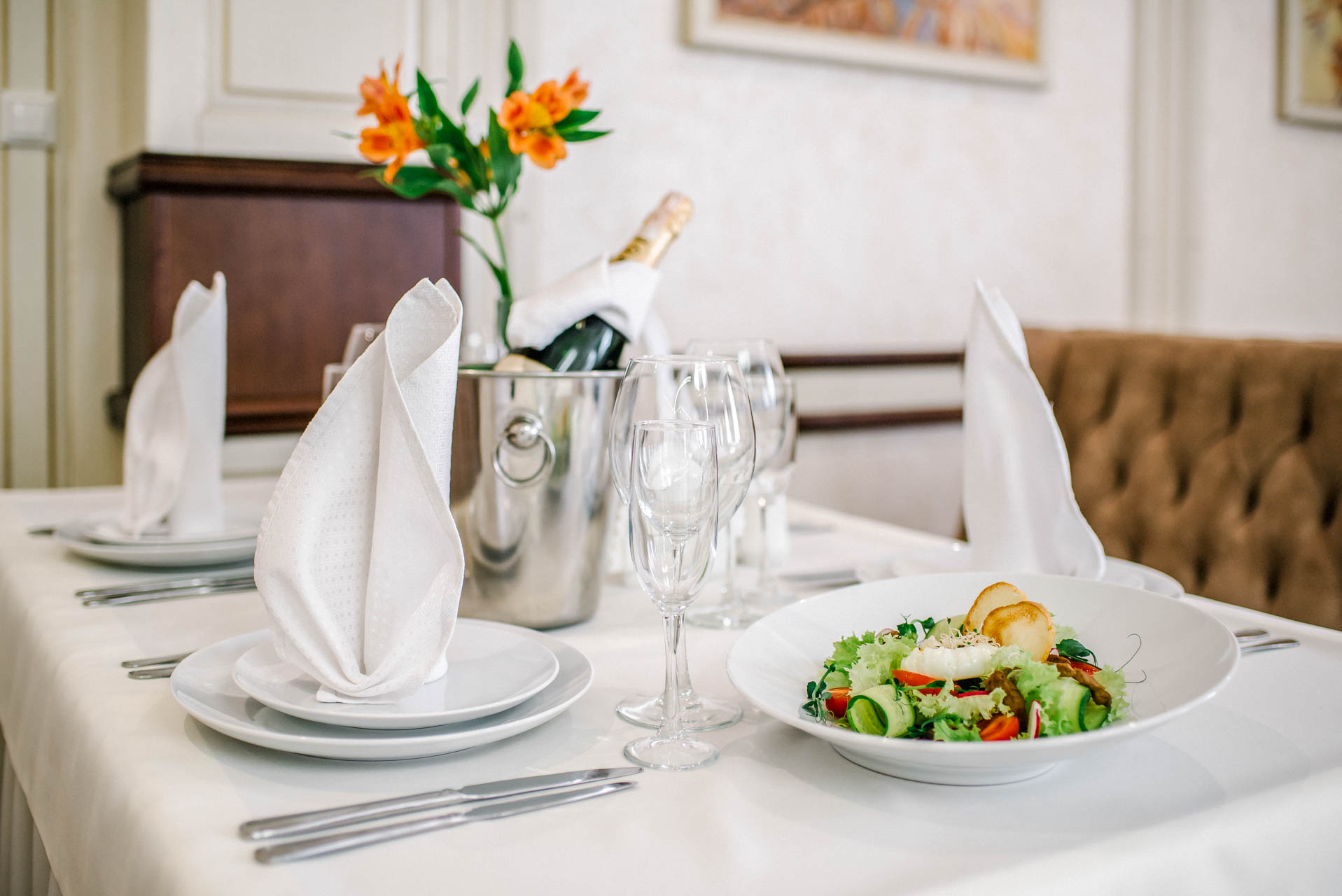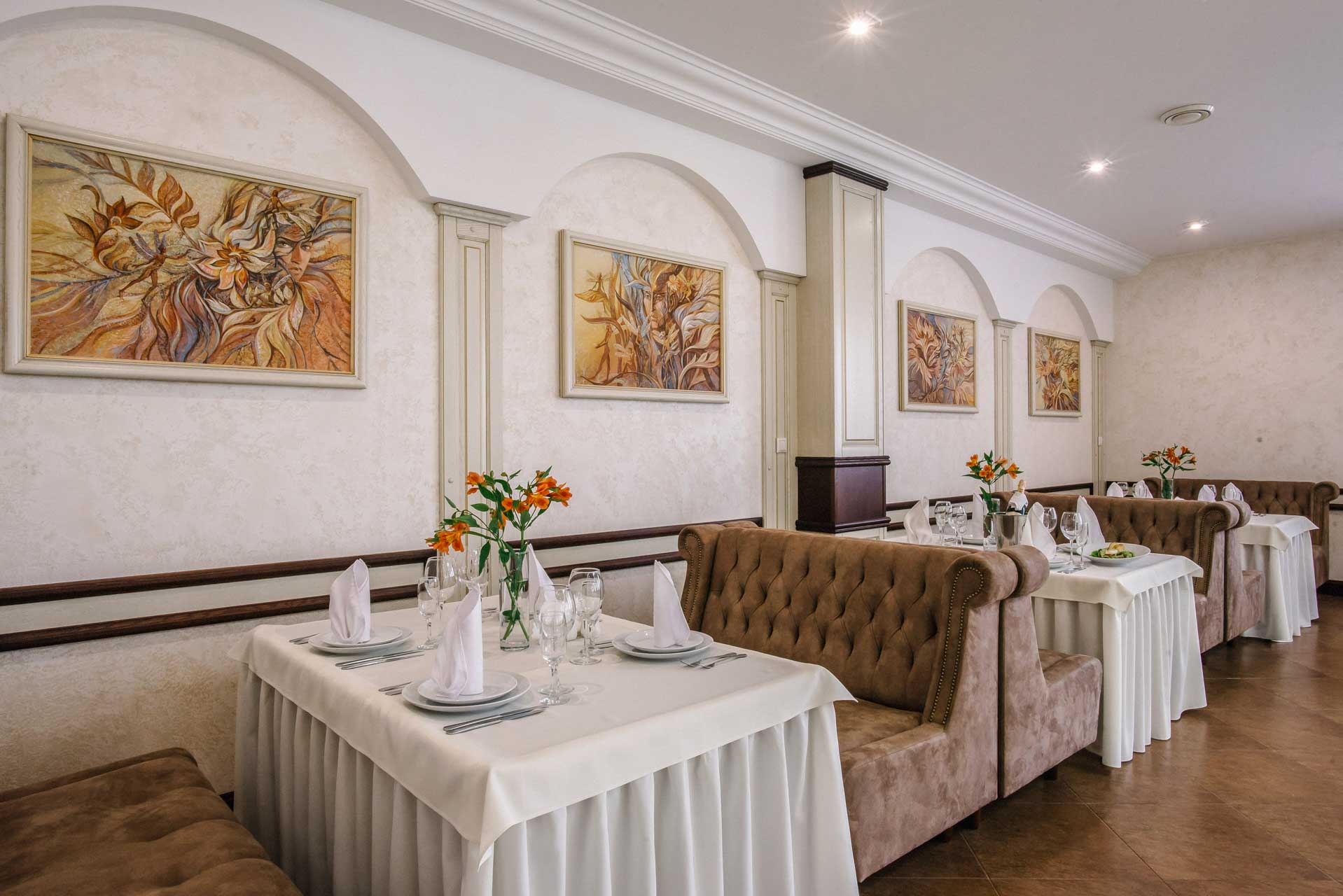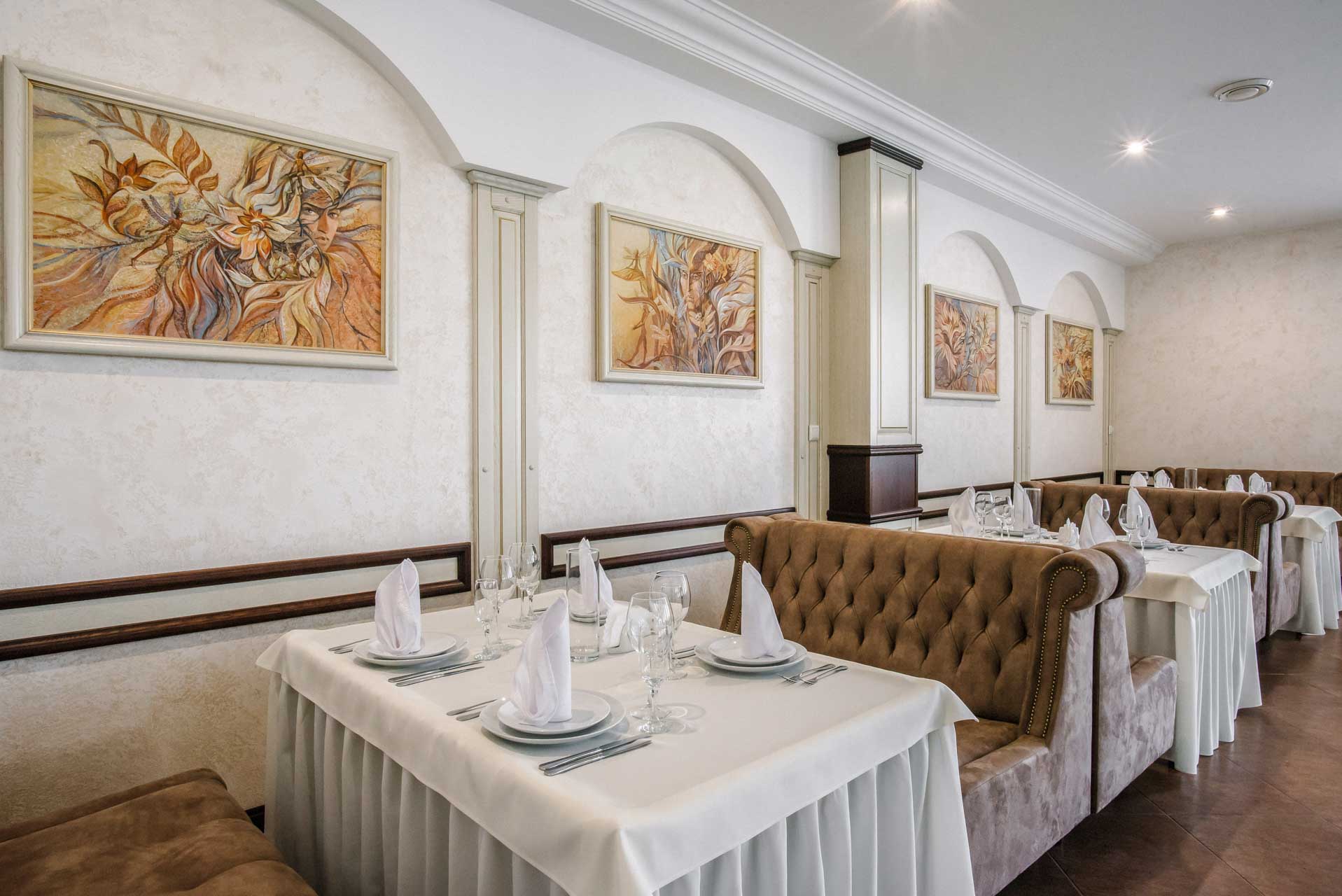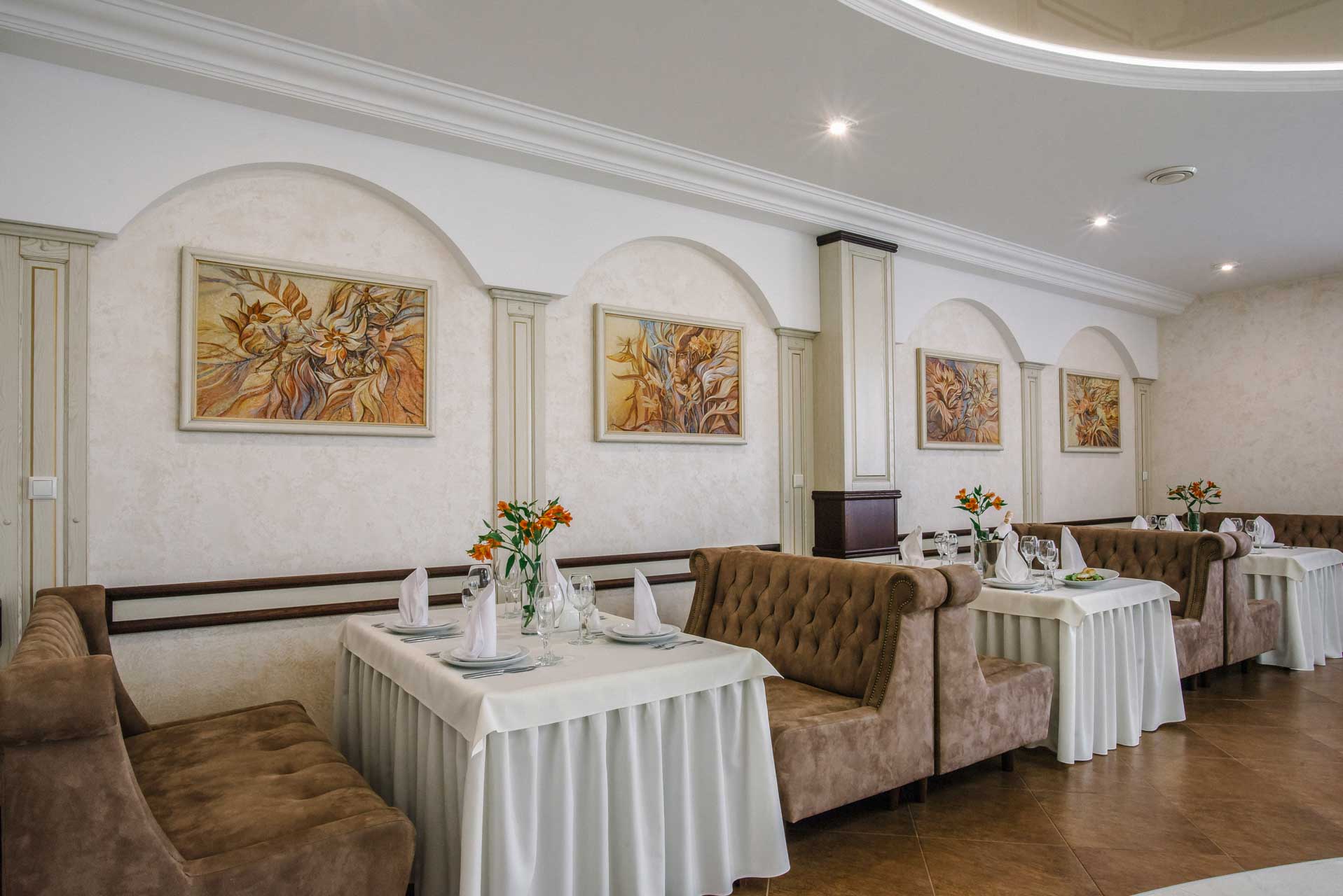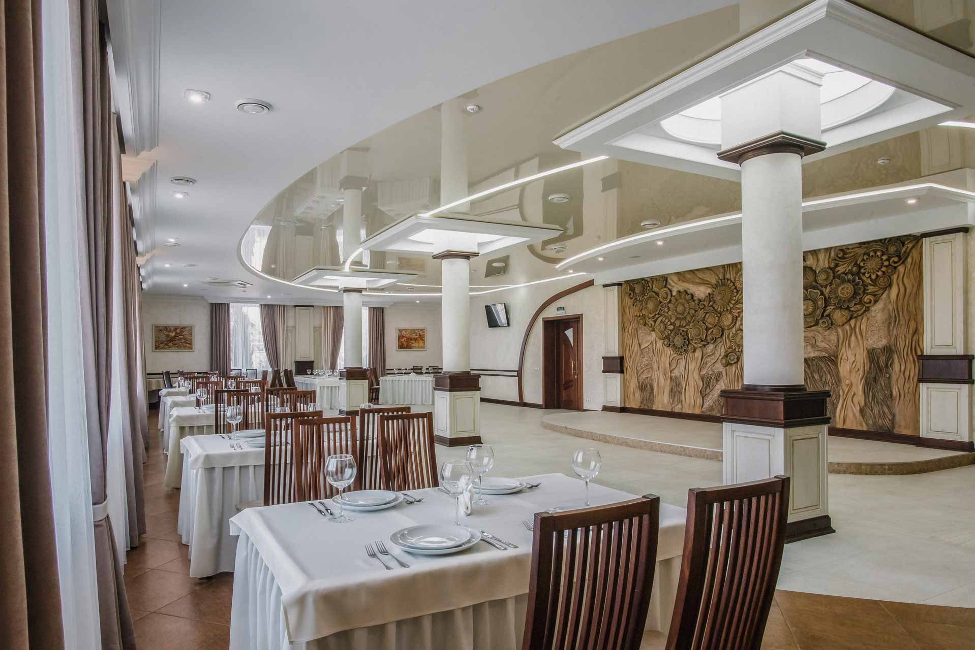 Основний зал ресторану «Рестпарк» розташований на першому поверсі комплексу та ідеально підходить для святкування незабутніх весіль і банкетів, корпоративних вечорів, а також для проведення вишуканих фуршетів. Дизайн ресторану виконаний в стилі сецесії та налаштовує на приємний відпочинок, а площа залу дозволяє одночасно розмістити до 200 гостей.