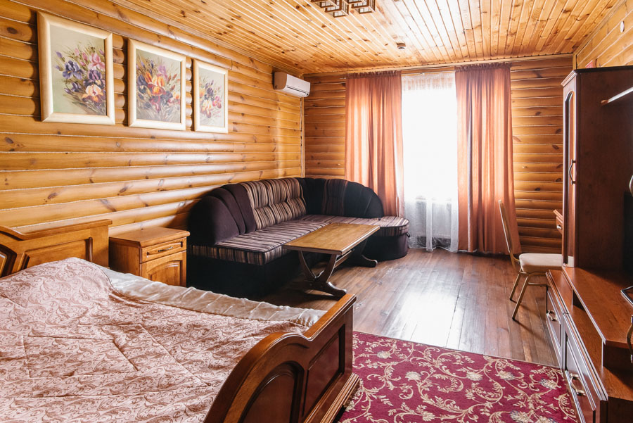 Мы заботимся о Вашем спокойствии и отдыхе и именно поэтому в специальной зоне нашего комплекса мы разместили четыре деревянных коттеджа. Мы уверены, что каждый гость найдет для себя любимый домик, где его будут ожидать наилучшие условия для качественного отдыха. В каждом из коттеджей есть большая двуспальная кровать, а также раскладной мягкий уголок еще для двух детей. Для Вашего комфорта мы оборудовали домики полностью автономными системами водоснабжения и отопления, а также кондиционерами.