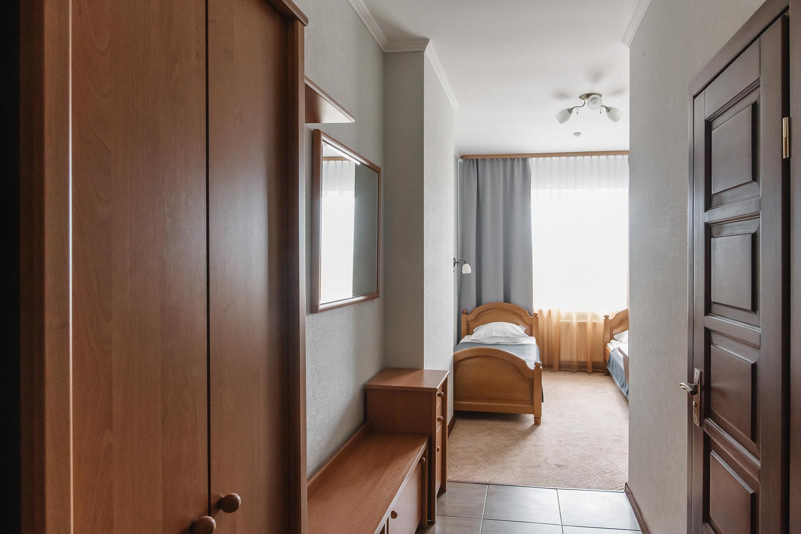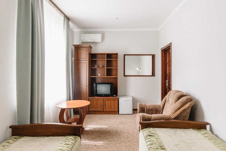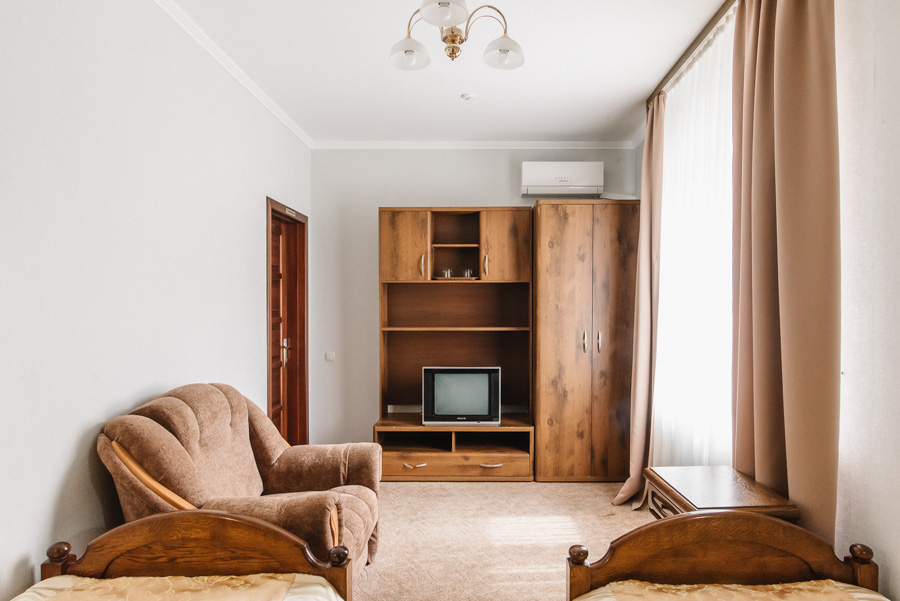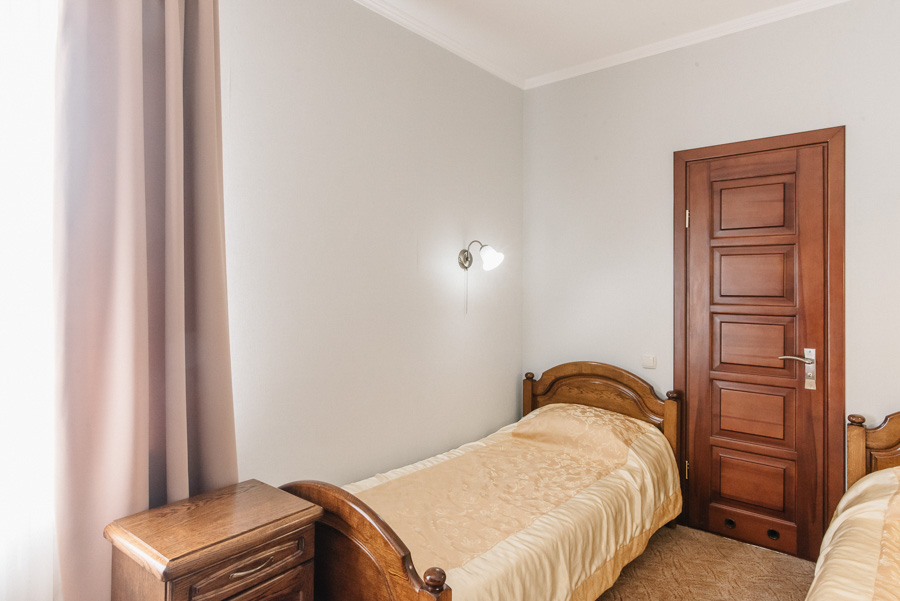 В уютном однокомнатном номере с двумя отдельными кроватями или большой двуспальной кроватью, на Вас будут ожидать максимальный комфорт и все необходимые условия, чтобы отдохнуть из дороги и снять усталость после напряженного дня. Площадь номера от 12 до 14 м2. Он чудесно подходит для тех, кто приехал в поисках новых впечатлений или же пожаловал в Луцк по делам.
